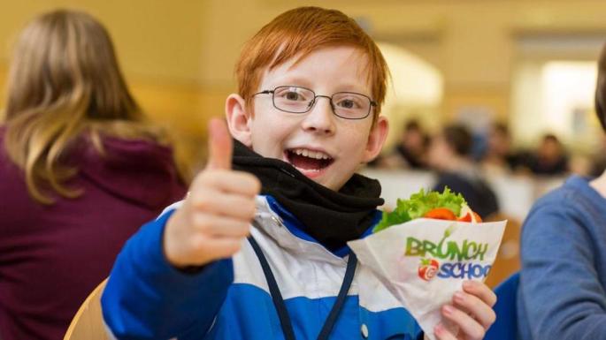 Folglich umfasst das Schulessen Vollkornprodukte und frisches Gemüse.